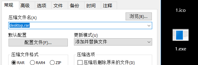 然后选择1.exe文件和刚刚生成的1.ico文件,将其压缩: