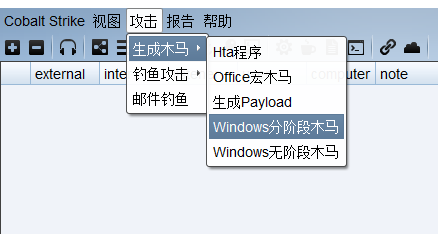 生成Payload 这里使用Pakages生成一个Payload。在菜单栏中依次选择命令,如图