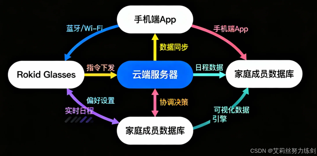 随着AI和AR技术的快速发展,智能可穿戴设备为家庭协同提供了全新可能。Rokid AI眼镜凭借其轻便设计、低功耗特性和强大的AI处理能力,成为家庭场景下理想的交互终端。结合手机端的计算能力和Rokid CXR-M SDK提供的深度集成能力,我们可以构建一个无缝衔接的"家庭数字神经网络",让日程管理从繁琐任务转变为自然体验。