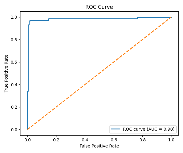 AUC≈0.98,说明模型对糖尿病和非糖尿病样本具有极强的区分能力。