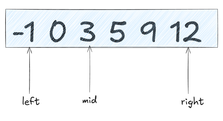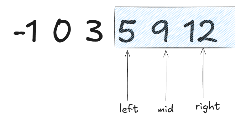 我们以输入: nums = [-1,0,3,5,9,12], target = 9为例