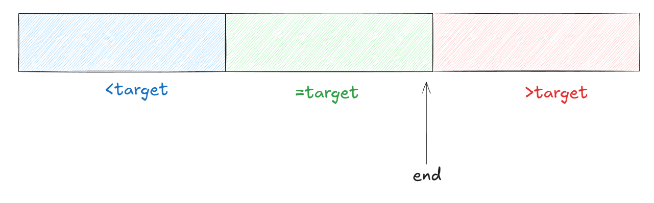 同样的我们的右端点把区间分成<=target和>target.