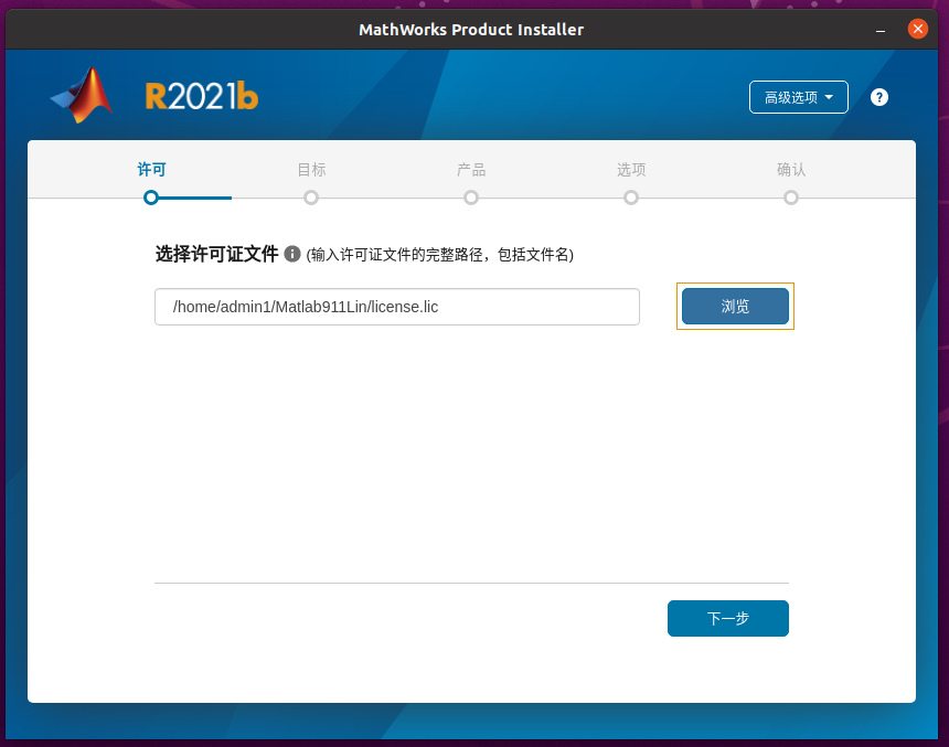 选择许可证文件:打开一开始有iso文件的文件夹,选择文件夹里的.lic许可证文件,点击下一步。