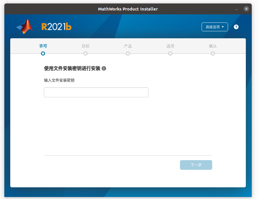 官方路径下载的,正常输入邮箱进入后续步骤。通过链接下载的,点击右上角的"高级选项",选择"我有文件安装密钥"。
