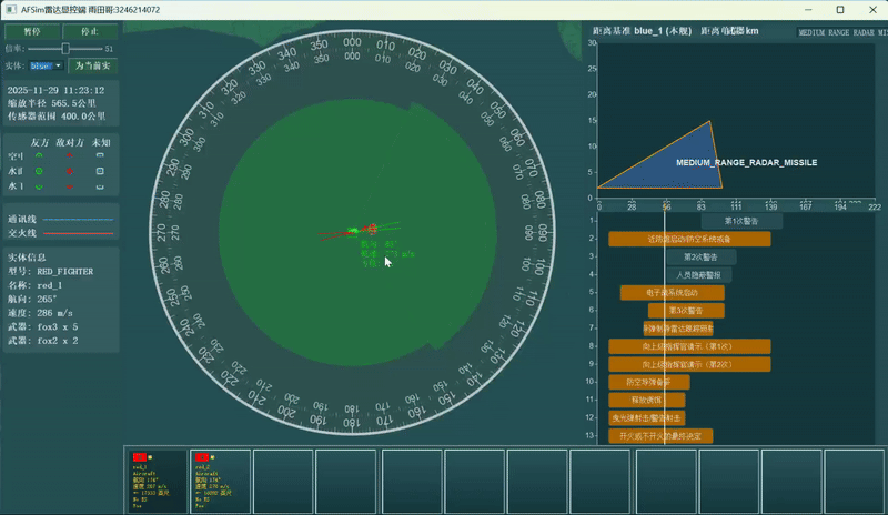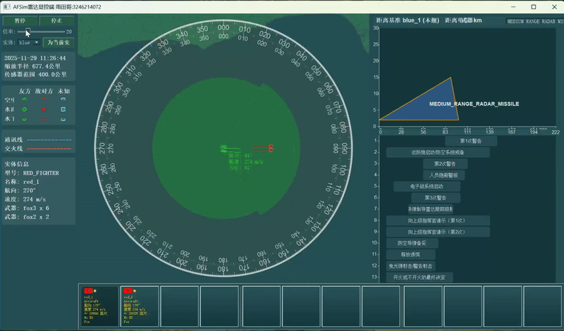 雷达探测范围显示功能用于在战术地图上可视化显示雷达传感器的探测覆盖区域。该功能基于Qt Graphics Framework实现,通过绘制扇形区域来表示雷达波束的探测范围。