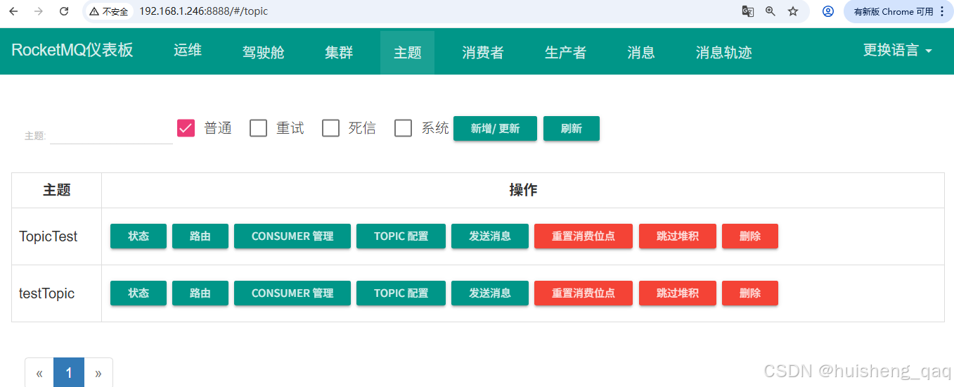 topic的主题如下,之前测试的一些topic也都加载了进来