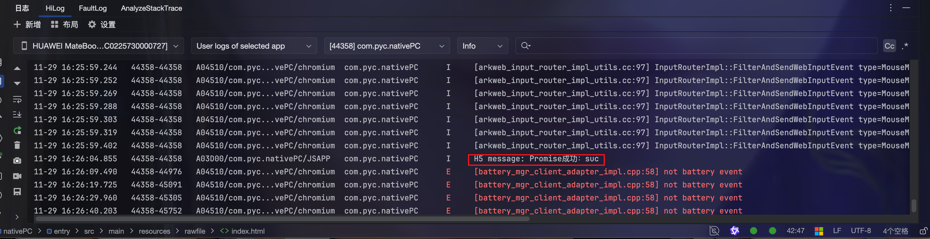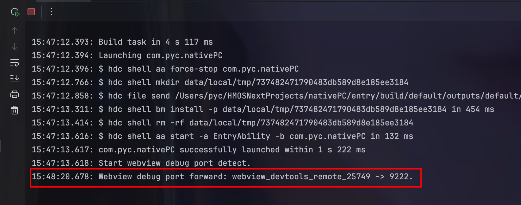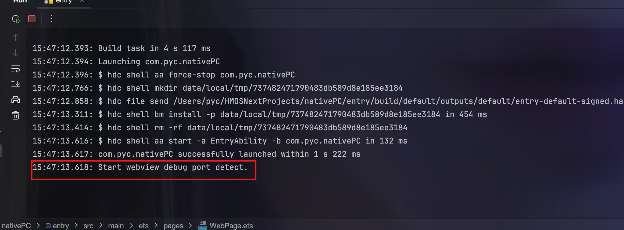 而当APP进入用到了 Web 组件的页面时,就会看到打印这样一行提示: