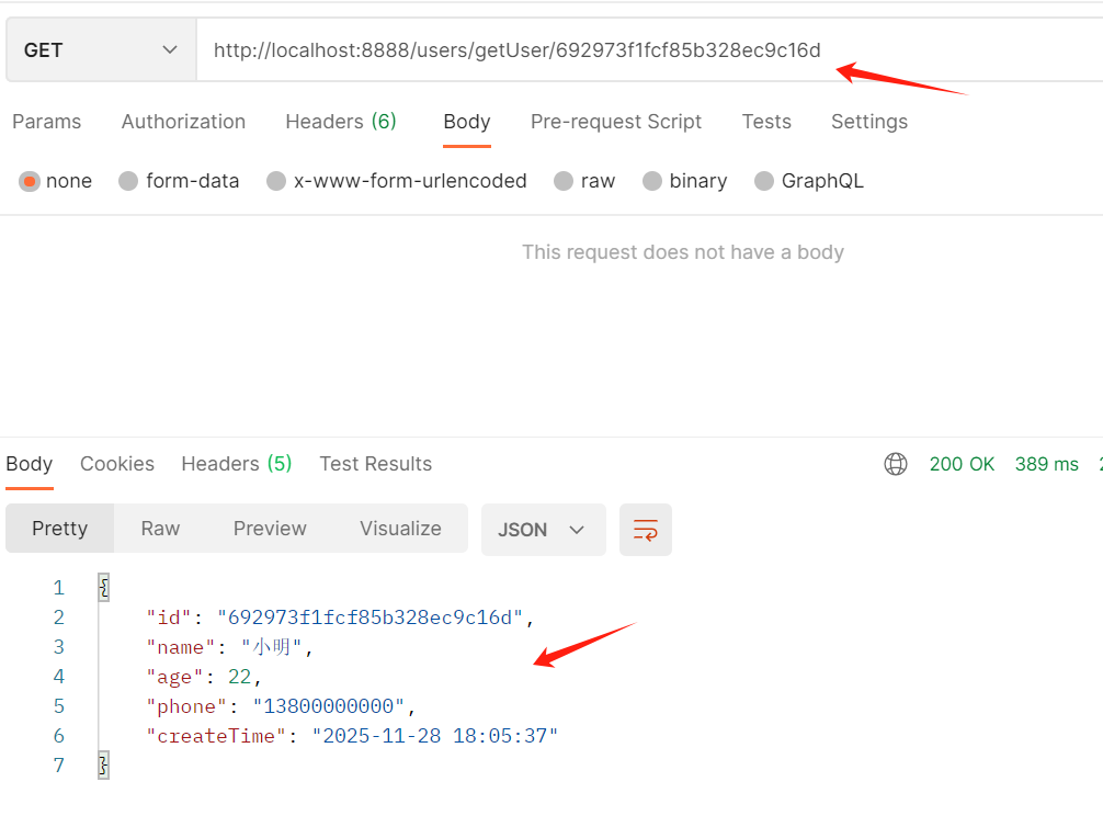 2.访问http://localhost:8888/users/getUser/692973f1fcf85b328ec9c16d
