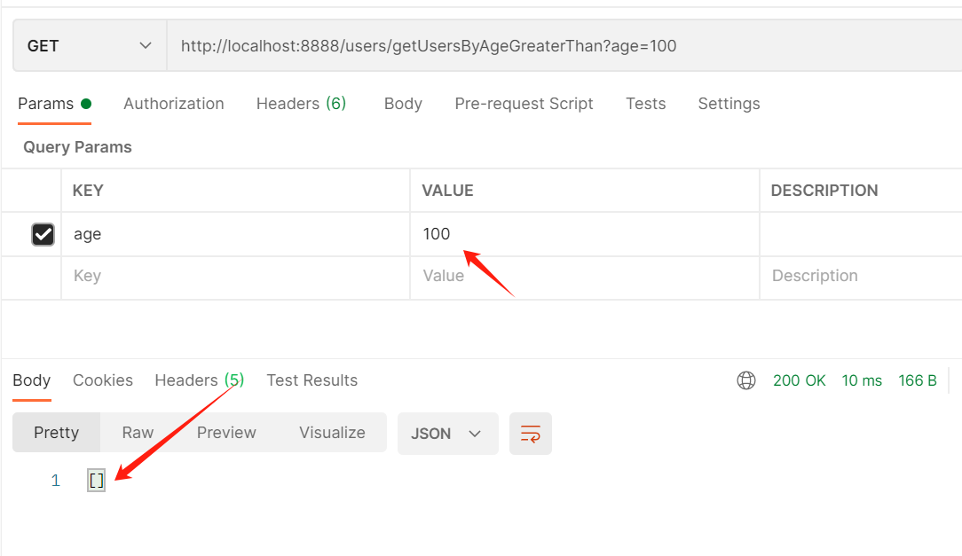 3.访问http://localhost:8888/users/getUsersByAgeGreaterThan?age=100