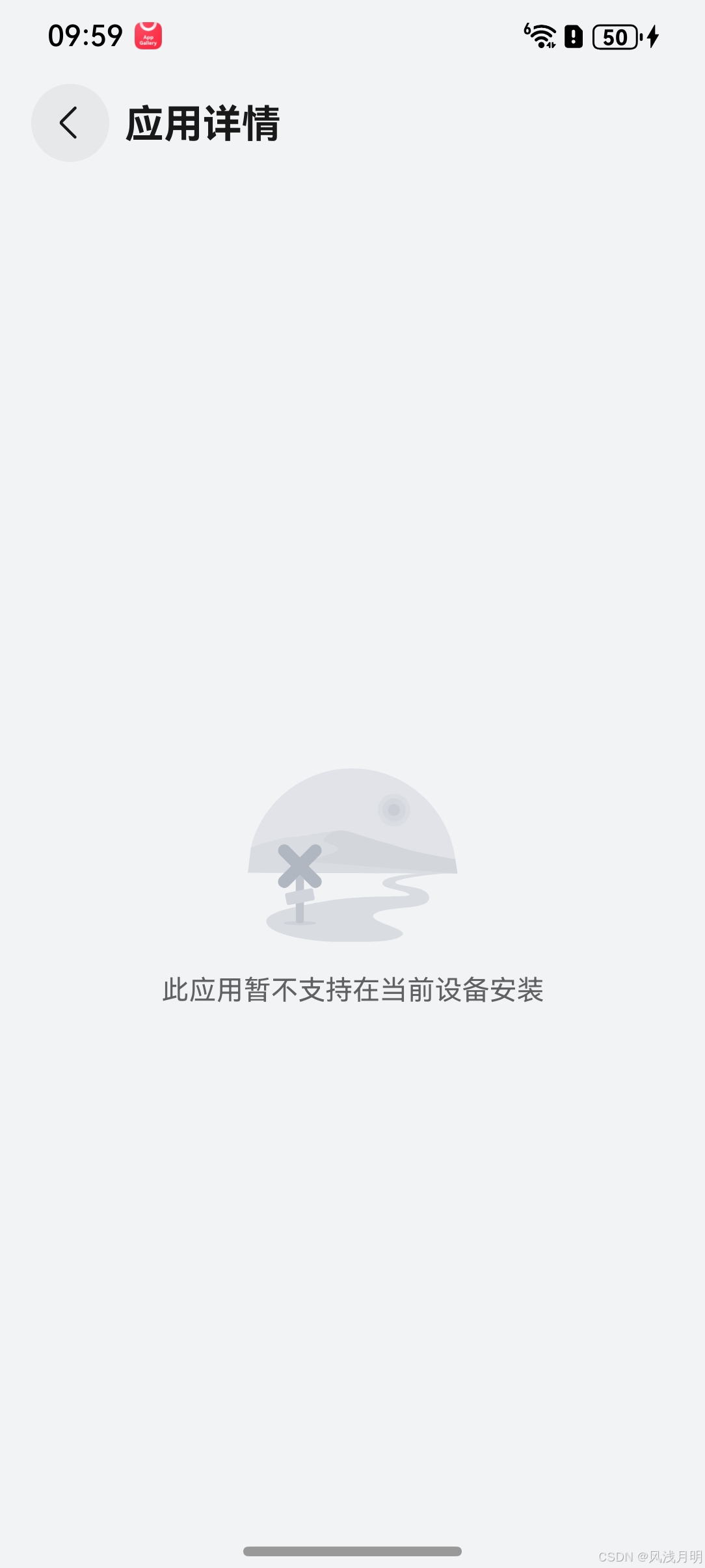 app还没上架时,跳转商店就会展示如下页面,提示"此应用暂不支持在当前设备安装"。