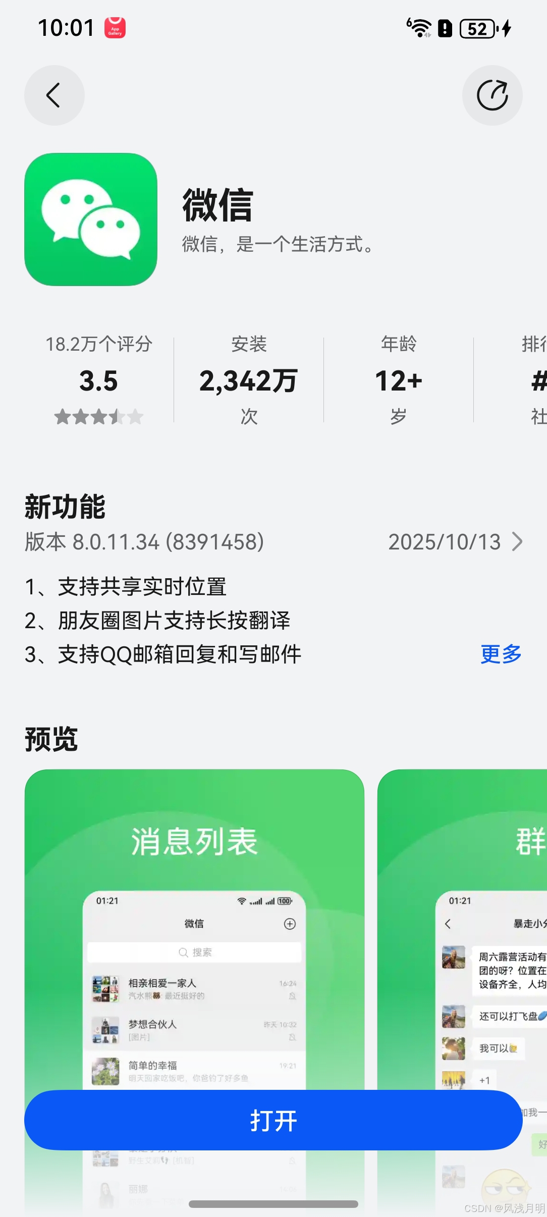 我们可以更换成微信包名"com.tencent.wechat",再次跳转应用商店,就能看见微信的应用详情页面。