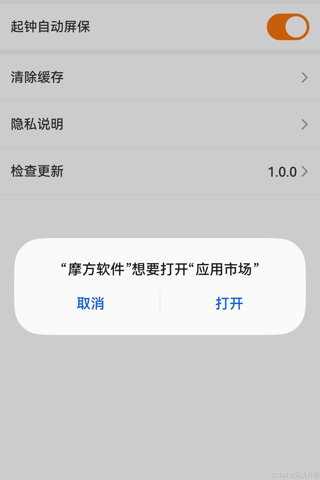 必须要用真机来调试跳转应用市场,用模拟器的话就会跳转失败,不会弹窗下面这个弹窗。