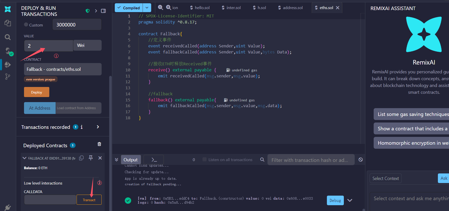 fallback()会在调用合约不存在的函数时被触发,可用于接收ETH,也可以用于代理合约proxy contract fallback()声明时不需要function关键字,必须由external修饰,一般也会用payable修饰,用于接收ETH:fallback() external payable { ... }。