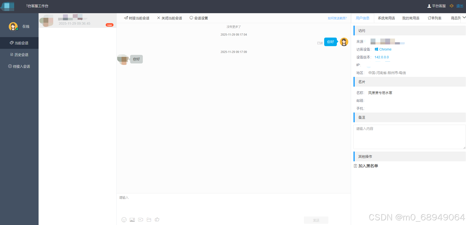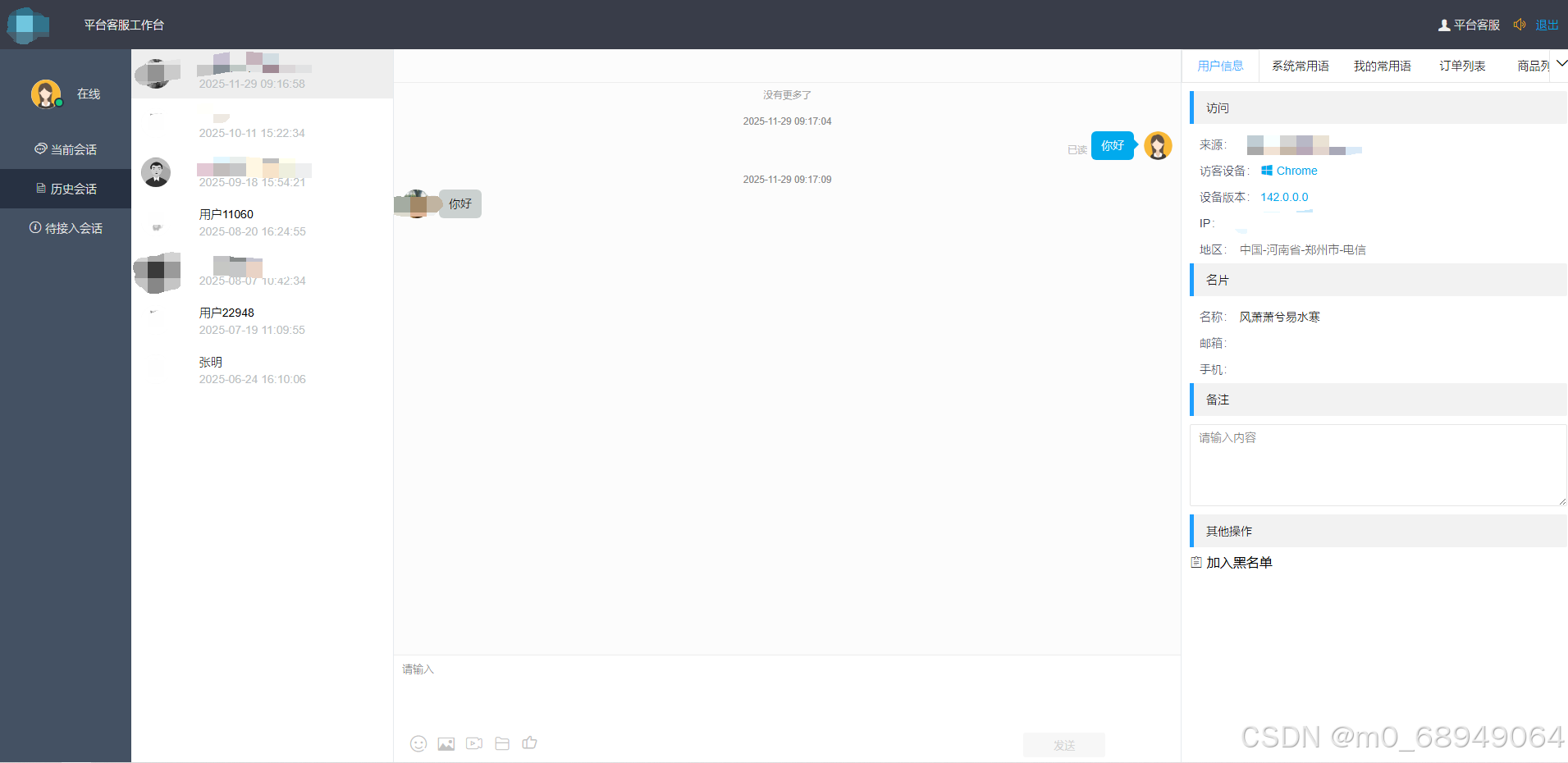平台客服页面: