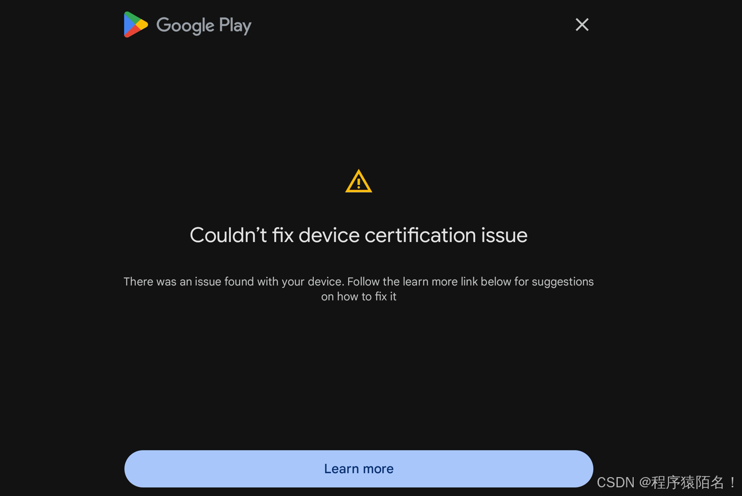 若仍显示Couldn't fix device certification issue,重启设备后再次尝试Fix device issue。