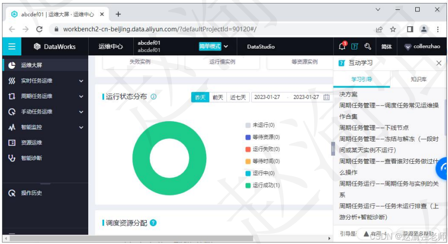 DataWorks运维中心支持数据时效性保障、任务诊断、影响分析、自动运维、移动运维等功能。下图展示了DataWorks运维中心的主页面。