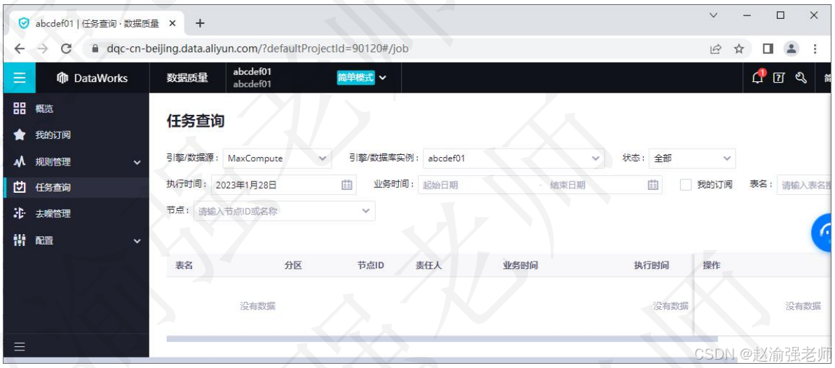 下图展示了DataWorks数据质量管理中的任务查询页面。