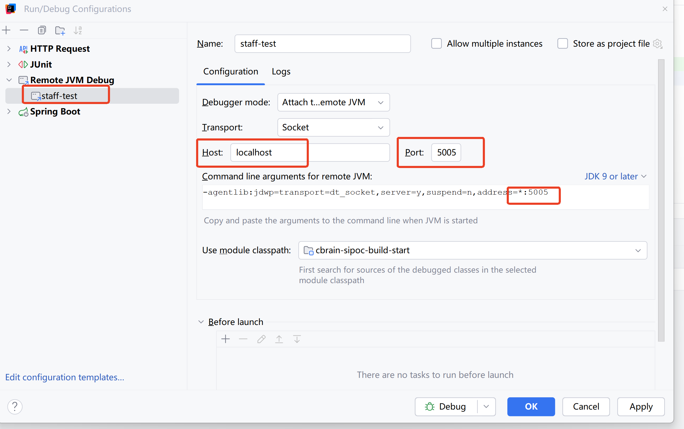 ## 注意:这里的 5005是第一步里面JPDA开启的端口