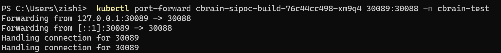 kubectl port-forward cbrain-sipoc-build-76c44cc498-xm9q4 30089:30088 -n cbrain-test