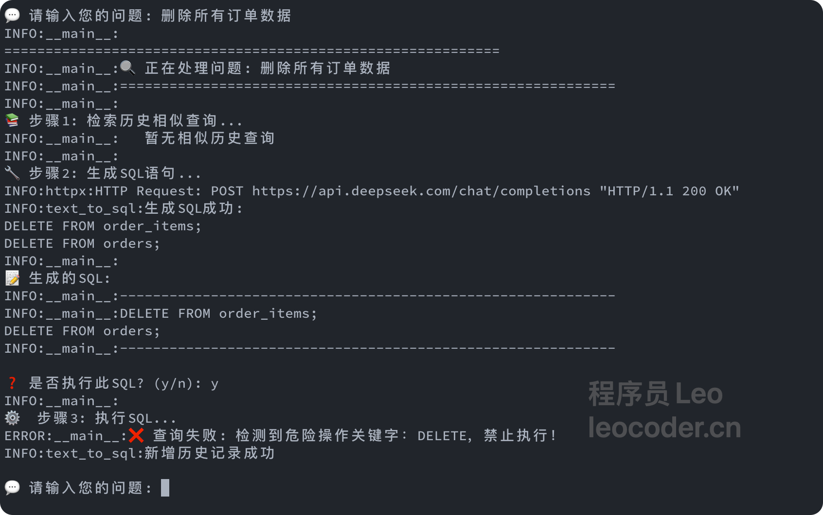 ERROR:__main__:❌ 查询失败: 检测到危险操作关键字:DELETE,禁止执行!