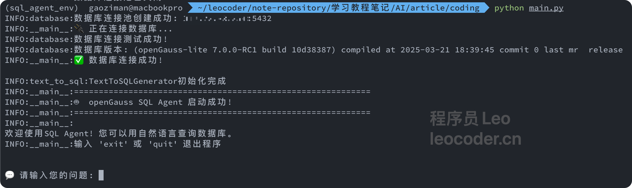 - 完整代码:https://github.com/yourusername/opengauss-sql-agent