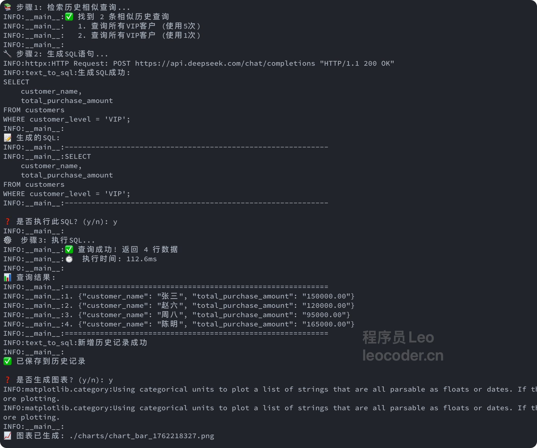 Leo哥说人话:就是让AI当你的SQL翻译官 + 执行助手。你用中文说"我要查XXX",AI自动帮你写SQL、执行查询、返回结果,甚至还能画图表!