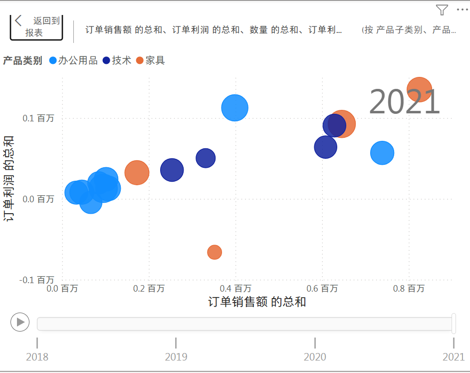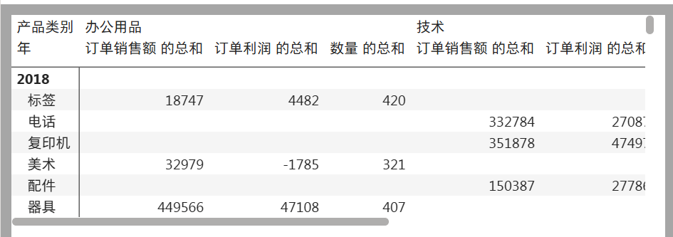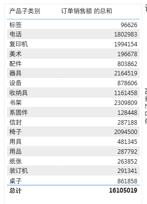 值 是 产品子类别。就是大的类别中有多少个子类,每个子类汇总求和计算他们的总计销售额和总计利润额
