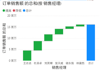 瀑布图显示总销售额贡献的大小