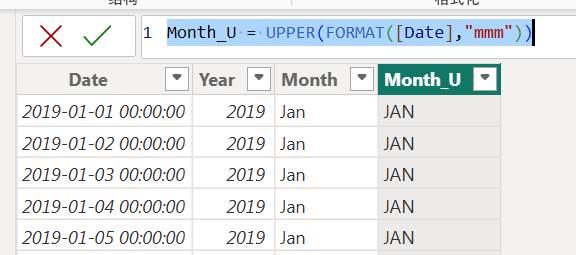Month_U = UPPER(FORMAT([Date],"mmm"))