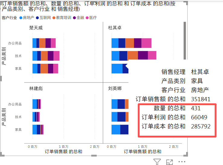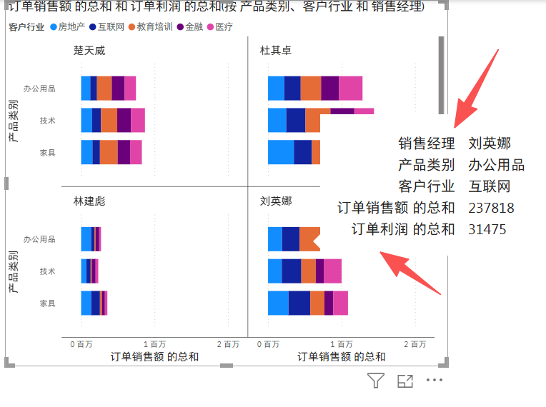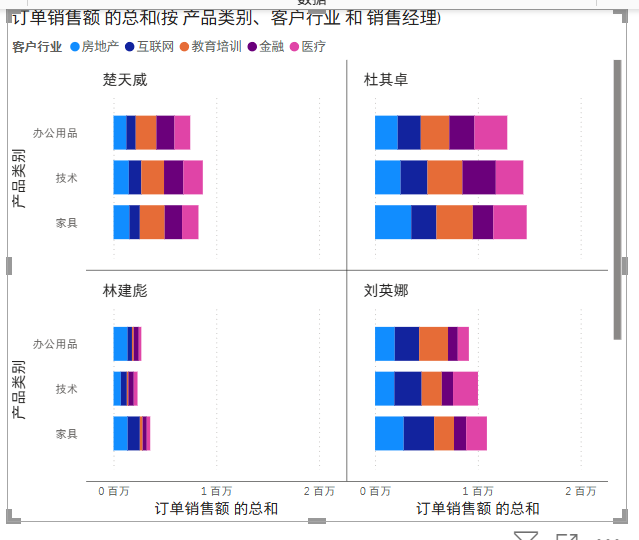 同一个类别的产品在 的客户在不同行业的数量就展示了