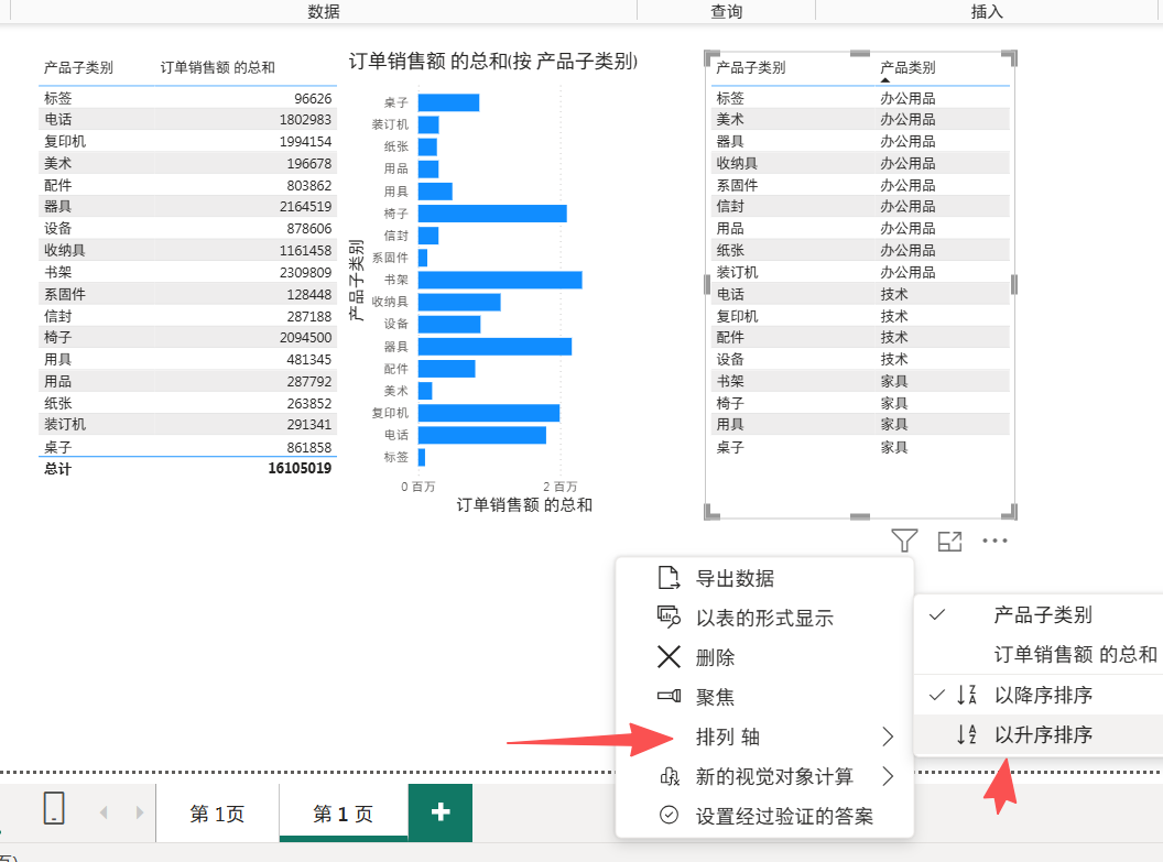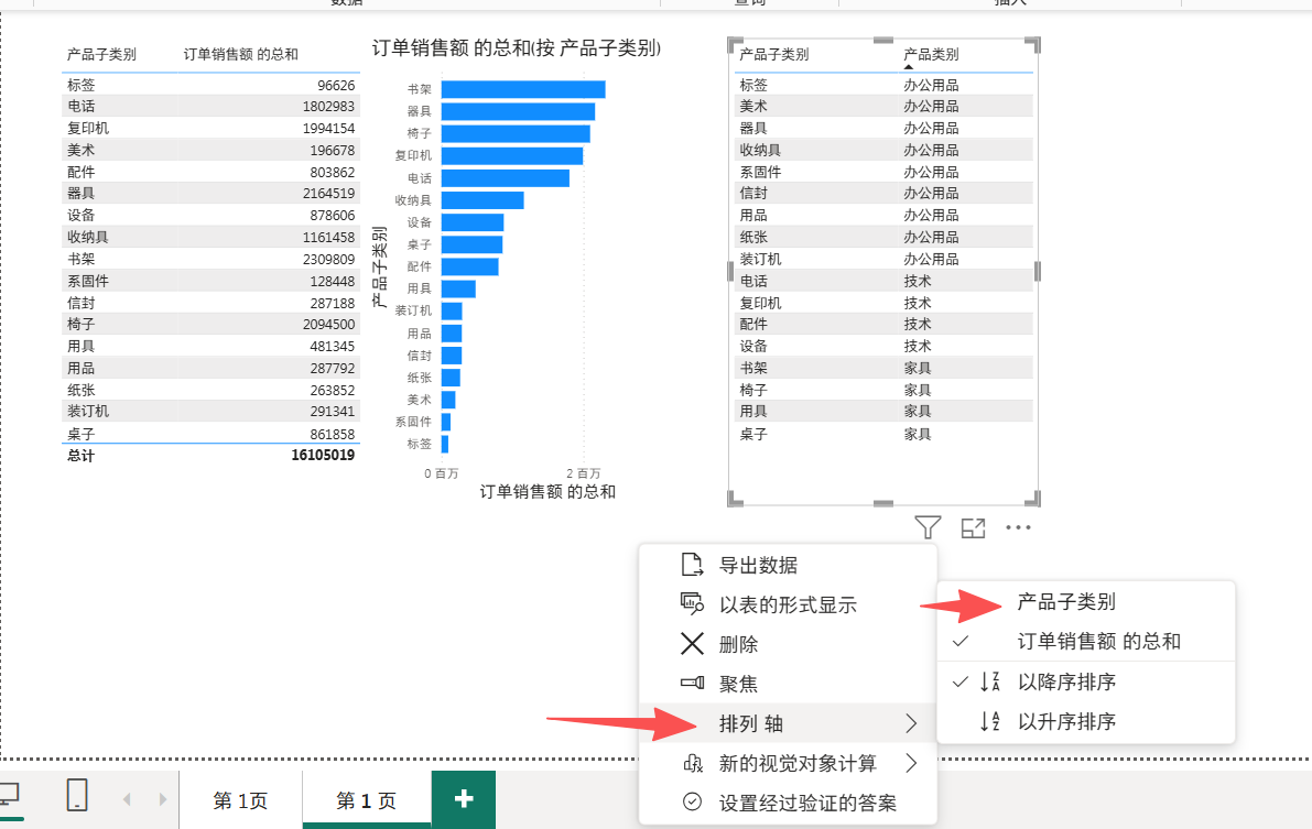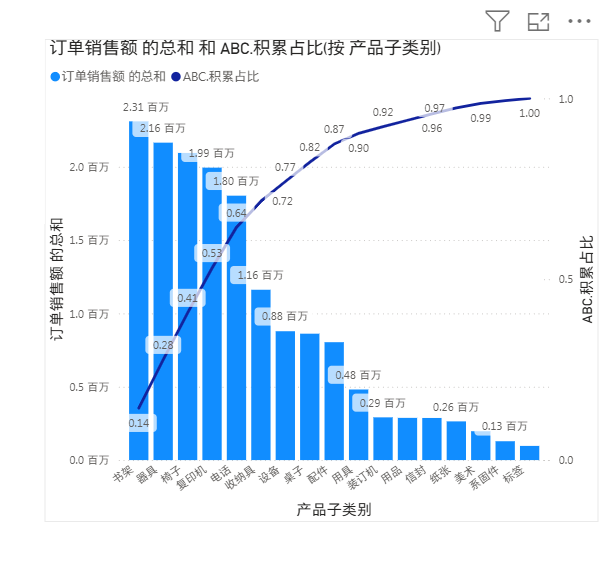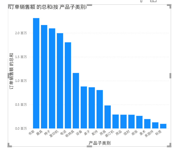 产品子类别和订单销售额拿进来,默认是按子类的中文的拼音顺序 abcd来排的
