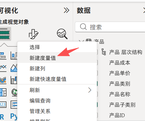 产品 那里 右键 新建度量值
