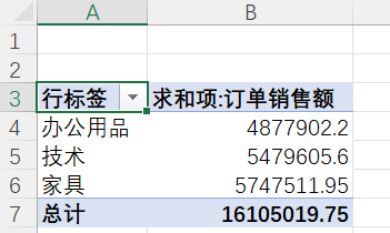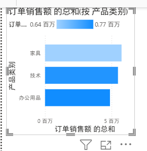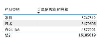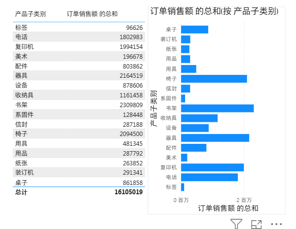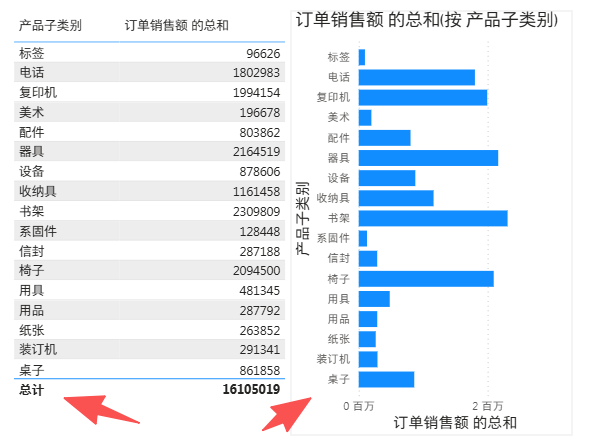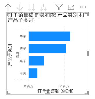就可以看到家具这个大类下面,细分的子类的销售额的区别