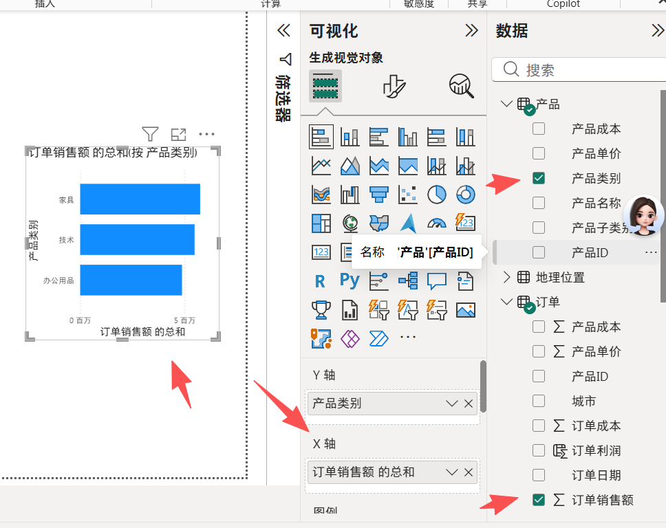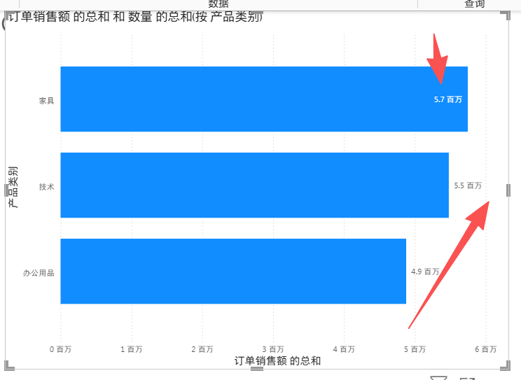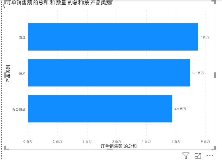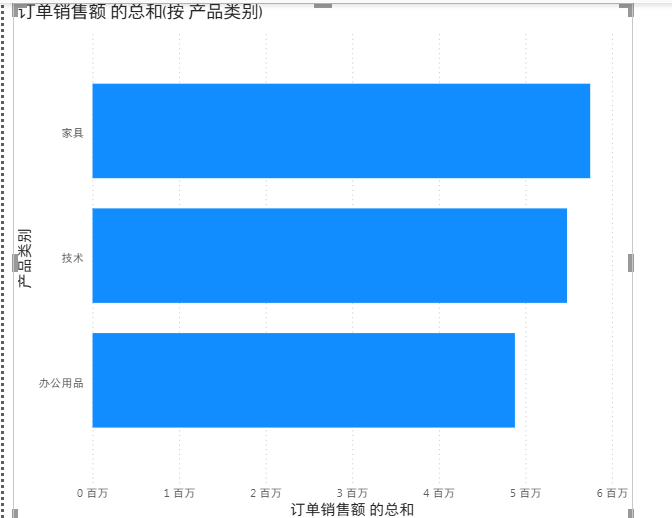 产品类别和销售额做一张柱状图。此时纵坐标只有产品类别这一项