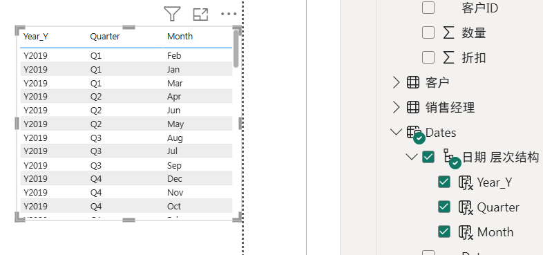 日期层次结构拖出来的表格这样