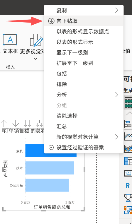 选中一个柱子,右键向下钻取