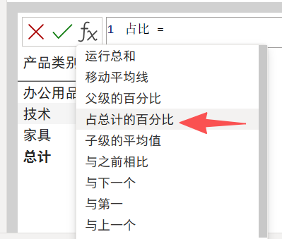 选占总计的百分比