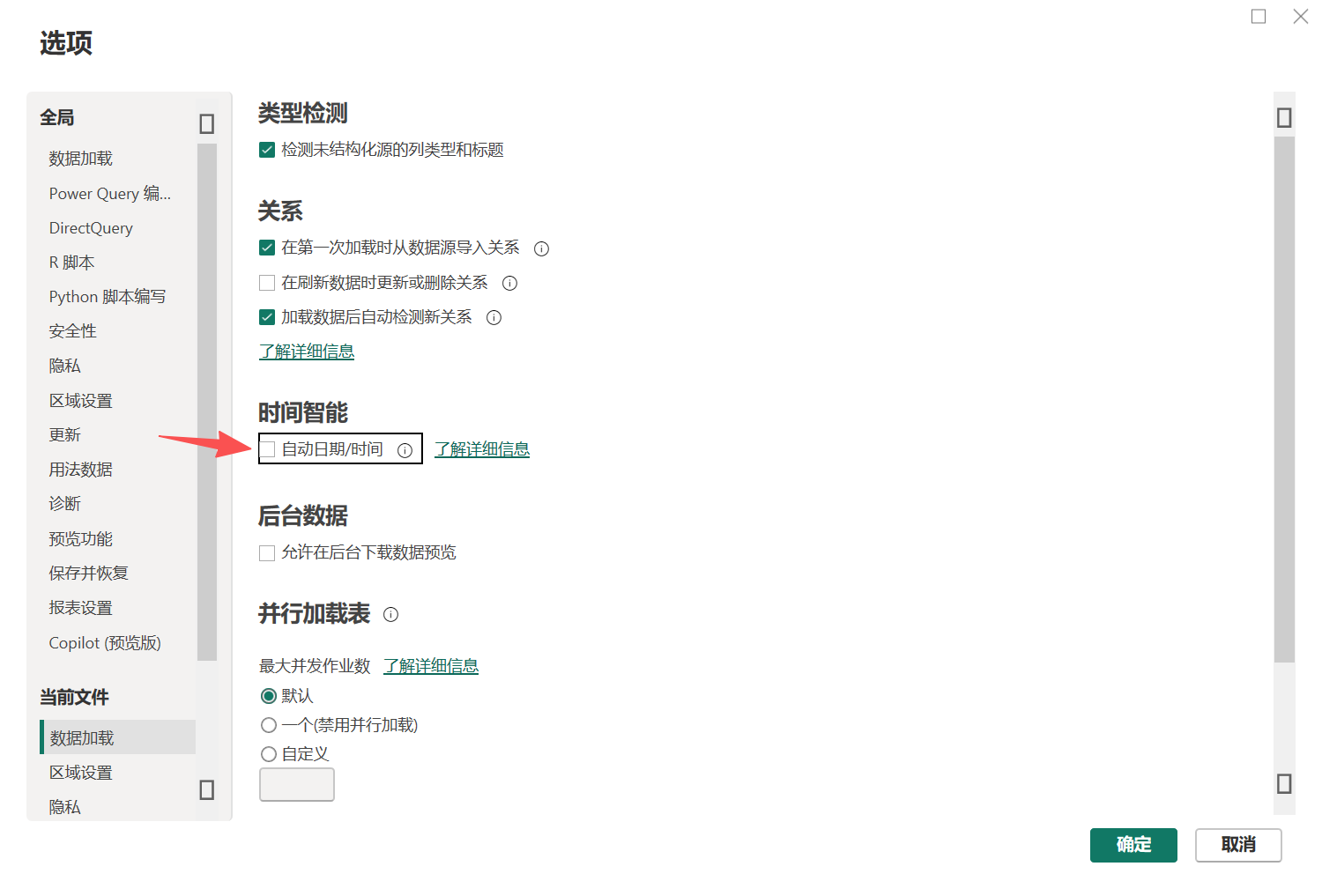 把系统自动创建日期表层次结构的功能关掉