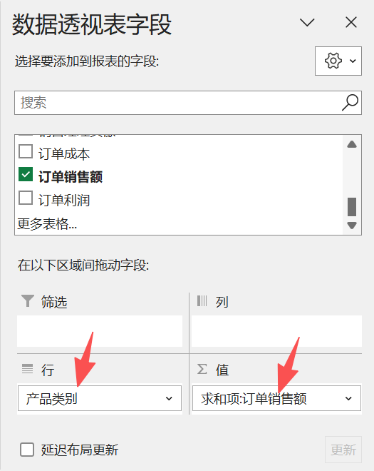 一行一个类别,所以产品类别放在 行 里