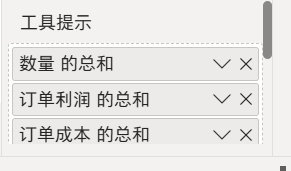 如果希望鼠标悬停在柱子不同颜色的每一节上,就显示利润这个数据。将利润移动到工具提示那里