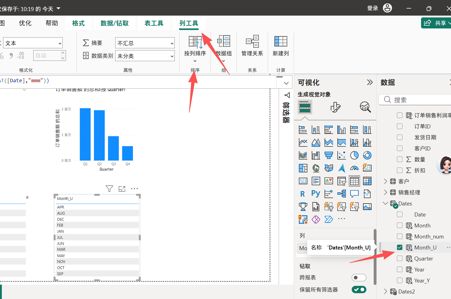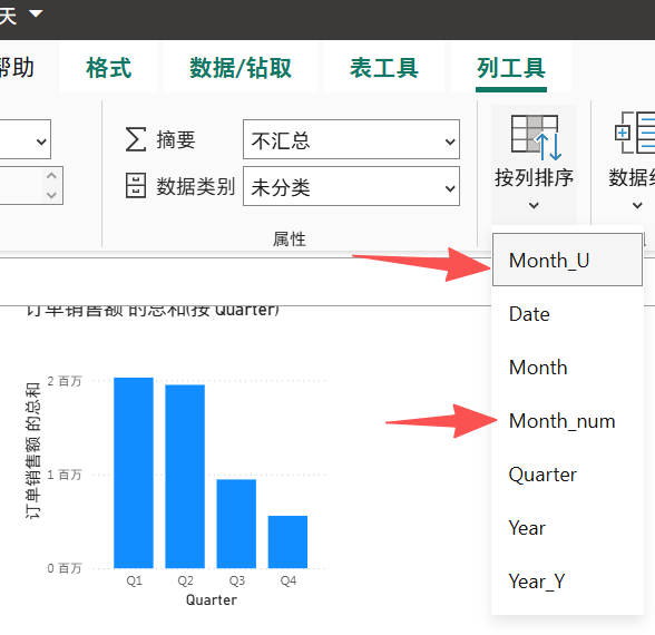 下拉菜单里点击,把从按照Month_U排序改成按照Month_num排序