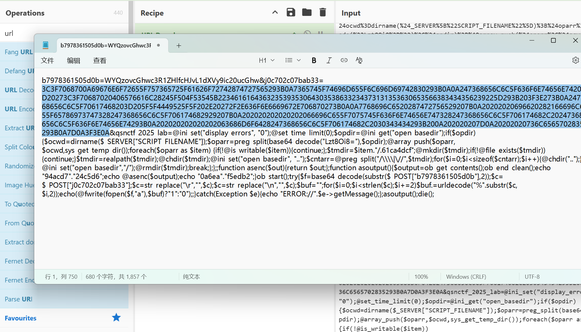 这里我们去流量包中复制出来可疑流量,复制解密的到txt中