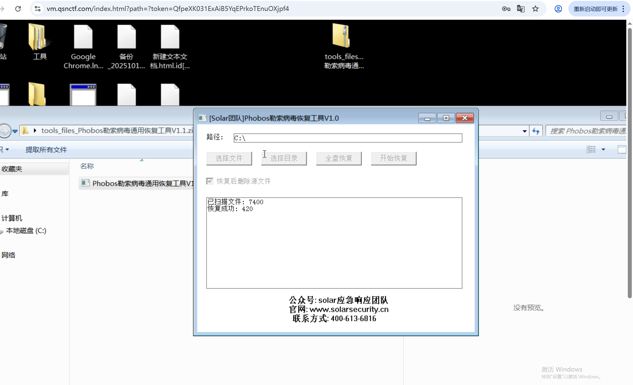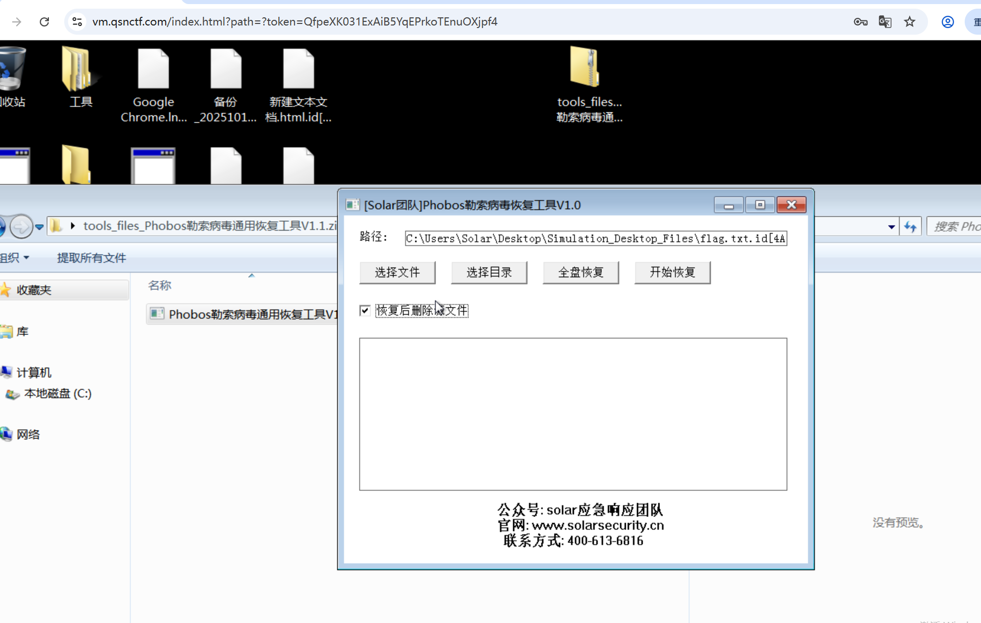 - 题目:应急响应.com 找到此家族恢复工具进行恢复,提交C:\Users\Solar\Desktop\lSimulation_Desktop_Files\flag.txt文件中的flag