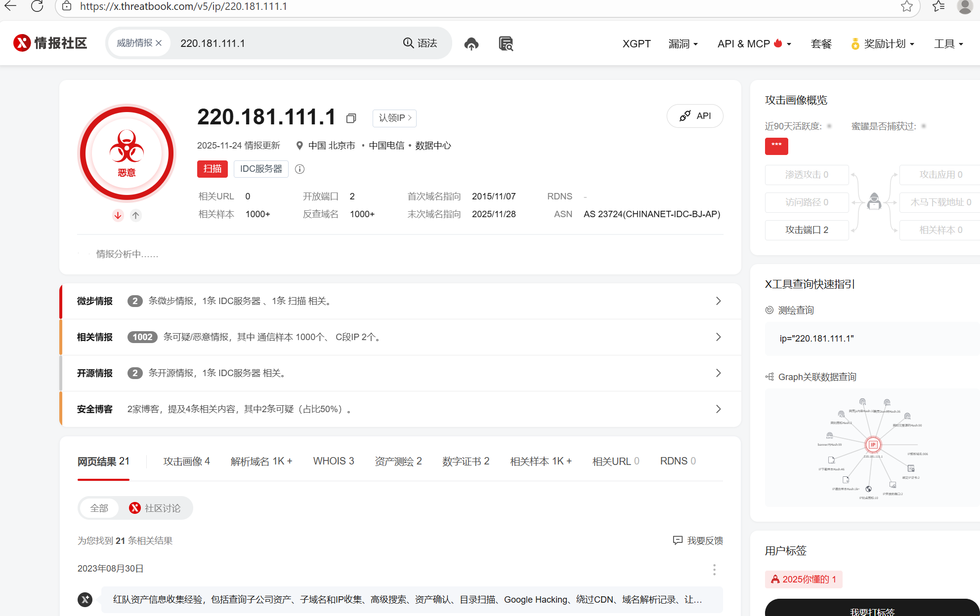 经过一分析,发现220.181.111.1是一个恶意ip地址,我也不知道哪个是了,反正当时都提交了一下,但是这么看倒向是220.181.111.1