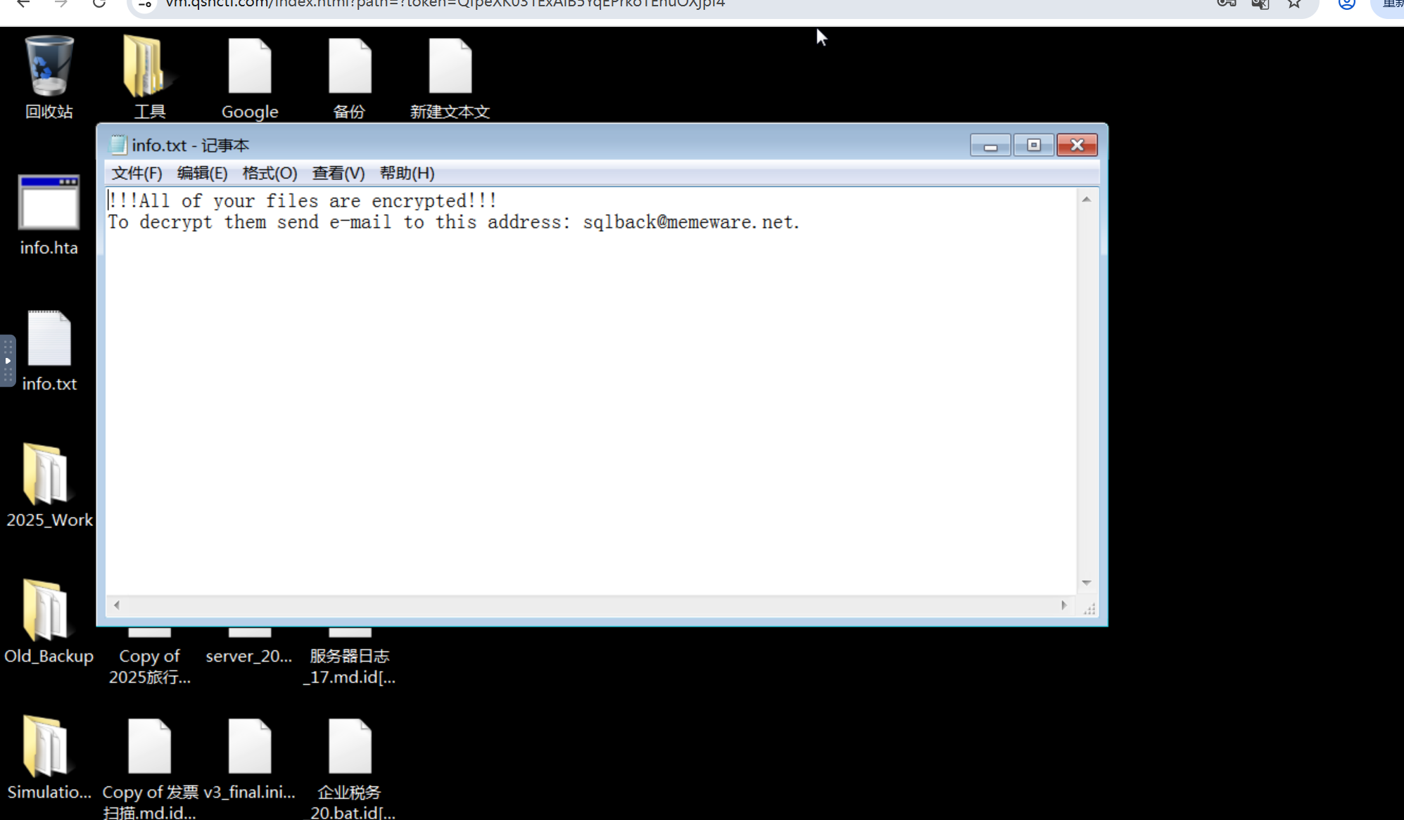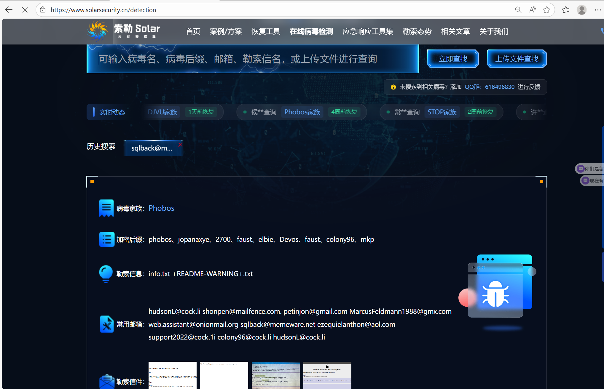 给我的第一个想法就是复制文件的后缀,或者去看一下勒索信,通过邮箱,或者加密后缀等特征去分析是什么加密,题目也告诉我们了,使用应急响应.com搜索一下勒索信中的邮箱