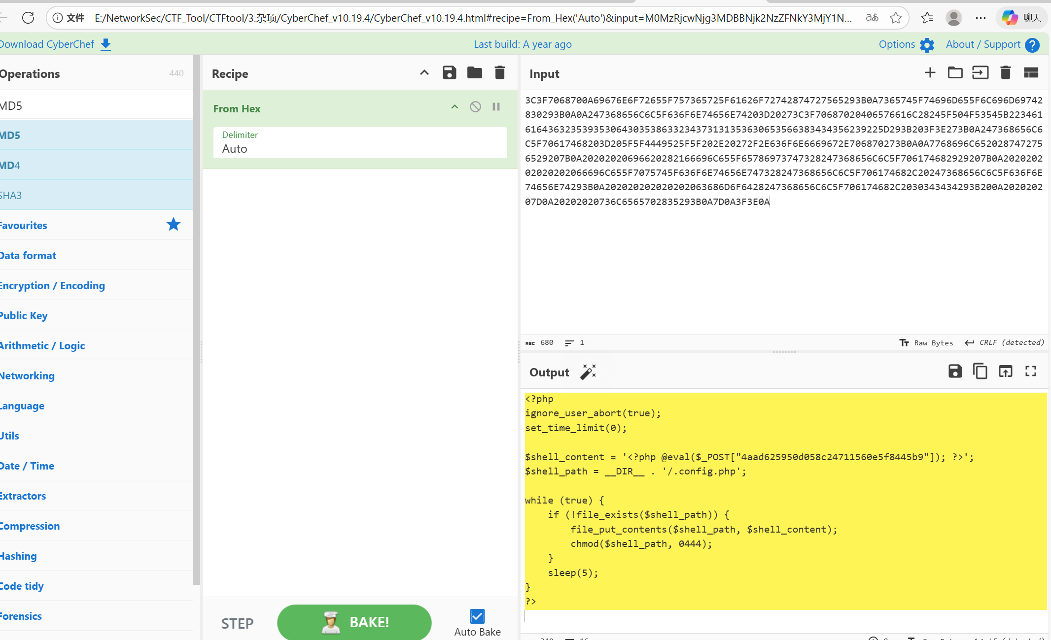 答案:flag{0410284ea74b11d26f868ead6aa646e1}