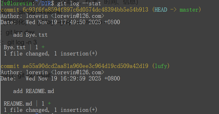 - 基础查看:git log(按时间倒序,显示提交哈希、作者、时间、信息)