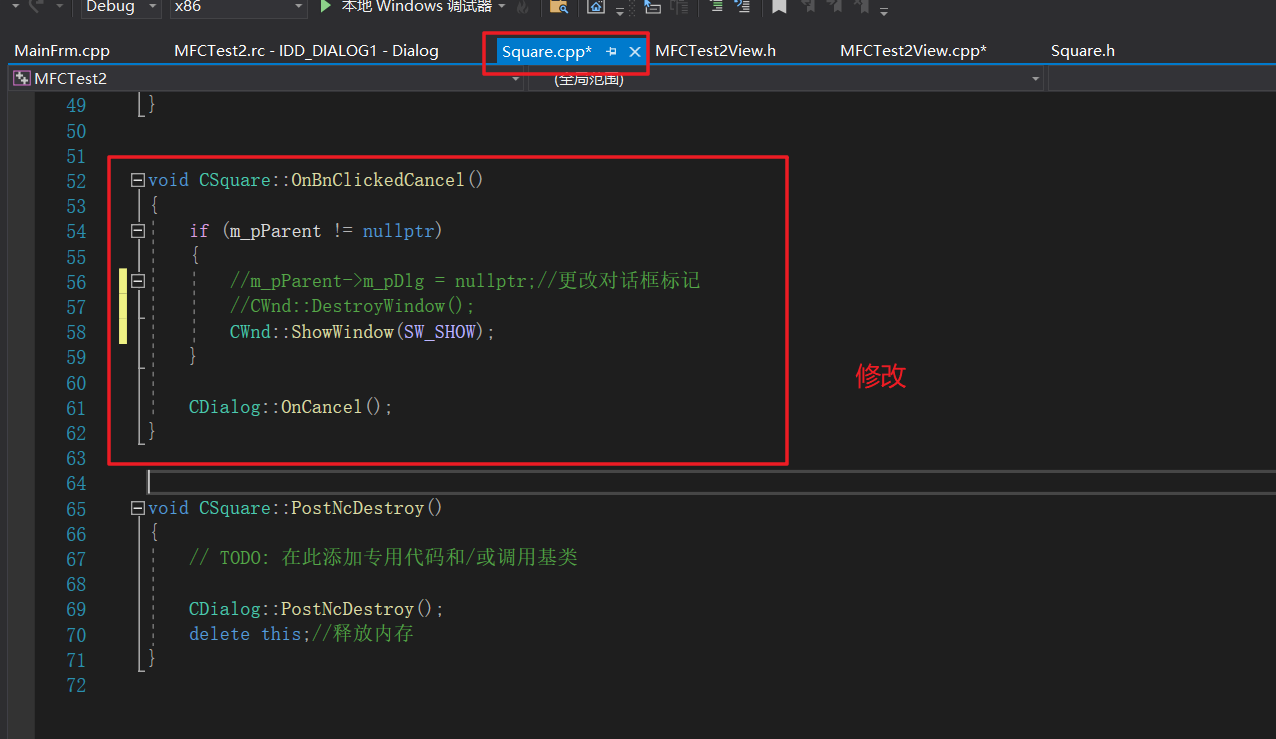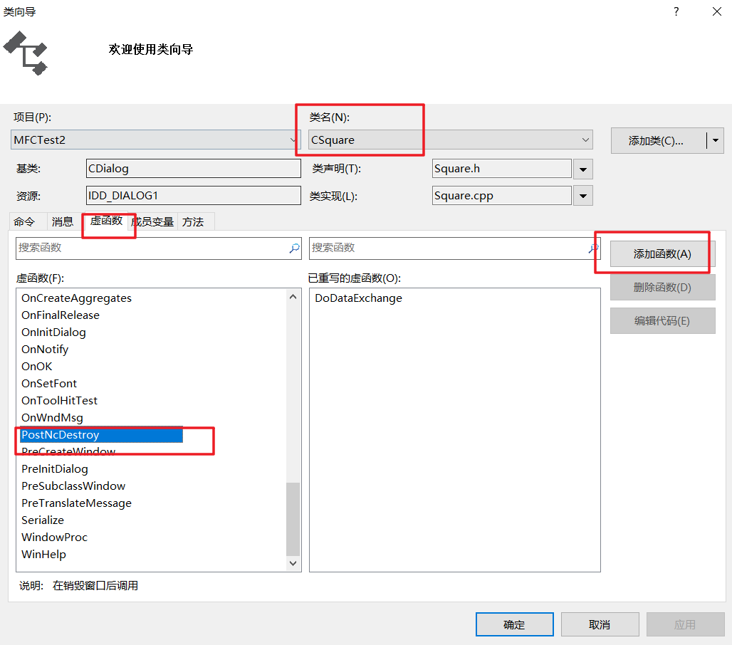 | CDialog::OnCancel | 替代以执行"取消"按钮或 ESC 键操作。 默认将关闭对话框,并且 DoModal 将返回 IDCANCEL。 |