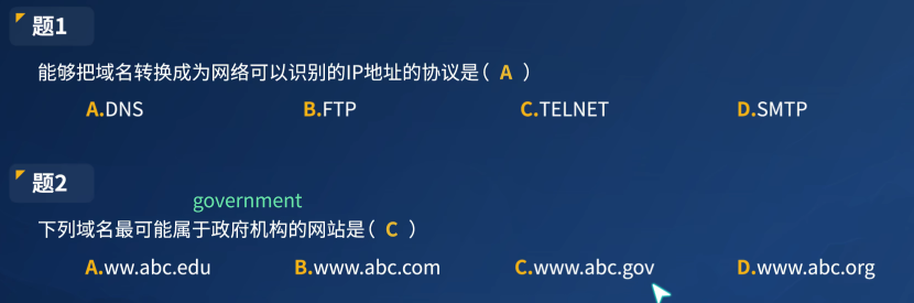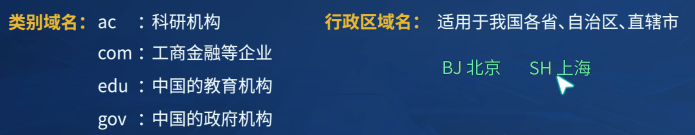 (2)我国把二级域名划分为了"类别域名"和"行政区域名"两大类