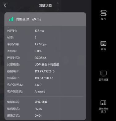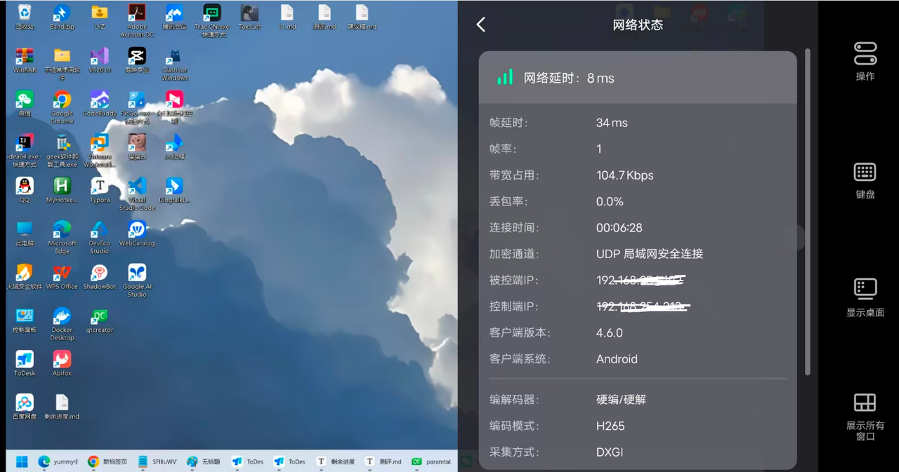 - 帧延时:34ms。这是端到端的总延迟(采集+编码+传输+解码+渲染)。34毫秒低于人眼的视觉残留阈值,操作起来拥有如同本地电脑般的"跟手感"。